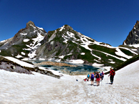 Les animateurs ont su avec compétence emmener les moins aguerris à la montagne jusqu’à plus de 2600 mètres, leur faire franchir de longs névés que le soleil n’avait pas encore fait fondre.