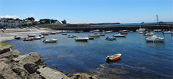 Arrivés au parking, nous avons chaussé les « godillots » et sommes partis d’un bon pied vers le port de Guidel puis vers l’embouchure de la Laîta. Nous suivons la rivière en prenant un sentier côtier ombragé avec des escaliers à monter, descendre… très bon pour le cardio. La promenade est très agréable car il y a un léger vent, la chaleur est très supportable.