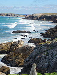 La mer est d’un bleu intense, avec une légère houle qui vient lécher les rochers de la côte, le paysage est superbe… nous avançons sur la côte sauvage.