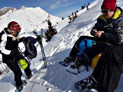 Mercredi, la neige tombait abondamment et les skieurs sont donc venus avec nous. Départ des Contamines puis montée à la Colombas depuis le Nivorin . Toujours des paysages merveilleux.