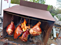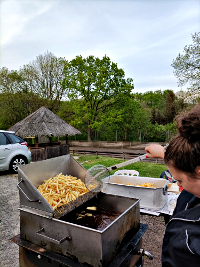 Au menu : assiette charcuterie-crudités en entrée et en plat un jambon cuit au feu de bois et des frites.