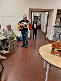 Après le dîner, les AN de Rouen et Le Havre se sont chargés magistralement de la partie animation. Le Havre avait imaginé une scénette très bien joué qui a beaucoup fait rire l’assistance. Rouen a assuré la partie chansons en s’appuyant sur un répertoire éclectique et en s’accompagnant de deux accordéons diatoniques et d’une guitare...Un superbe moment fort apprécié des participants.