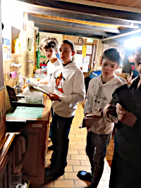 L’ensemble des vacanciers a participé à l’approvisionnement en bois pour la cuisinière en effectuant une chaîne partant du premier étage jusqu’au rez de chaussée...le tout à l’extérieur...les pieds dans la neige !