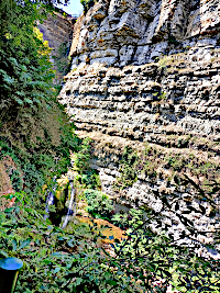 Il reste environ 2 km à parcourir. A la descente nous retrouvons le GR 62 qui nous rapproche de la cascade qui chute d’une vingtaine de mètres dans un bassin circulaire dont l’eau s’écoule vers la rivière Le Créneau. Nous finissons par la montée de raides marches en pierre jusqu’au belvédère offrant une belle vue sur l’ensemble de notre rando. 10 km, 400 m de dénivelé.